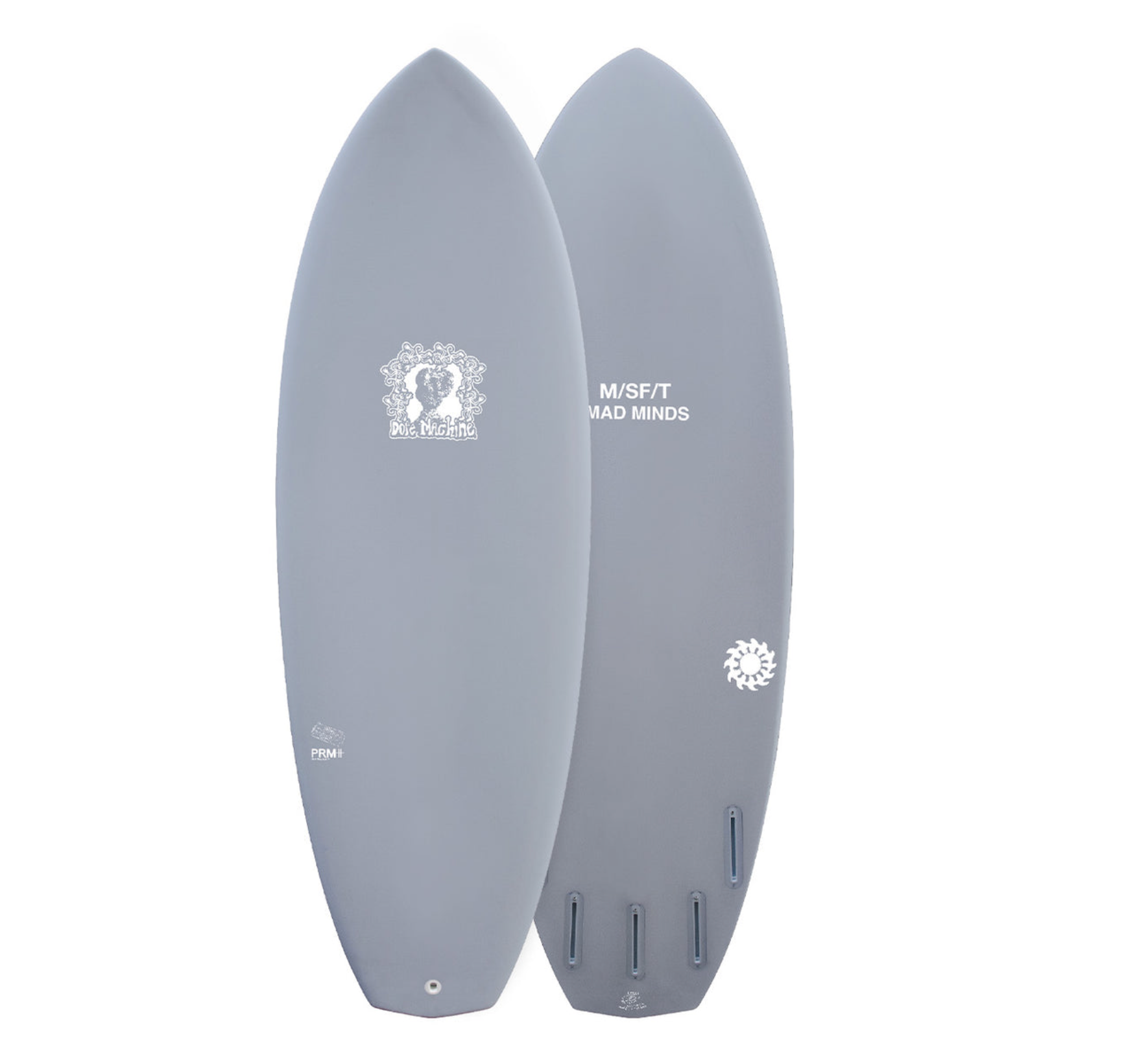 Unrivalled, unprecedented, pure fun; the ‘DOPE MACHINE’ is the first of our collaboration series with long time ‘MAD MINDS’ Advocate George Henderson of ‘A DEAD COFFIN CLUB’. Fundamentally, it is a combination of a classic high wide point fun-board, almost reminiscent of a 70’s single fin spawned with a modern proggy fish or hybrid. The signature diamond tail gives the board a shorter rail line, so the water breaks earlier which creates an early pivot point for a wildly responsive, tighter turning board that also allows for positioning in more critical parts of a wave. The rail volume is reduced slightly, rocker increased and bottom concave charged up for damn a lively ride. True to name, the “DOPE MACHINE” is one TUFF customer. It’s a little known fact that before the invention of transparent, high-impact polycarbonate, the L.A.P.D used DOPE MACHINE’s as riot shields during the ‘big bruise up of ‘88’.